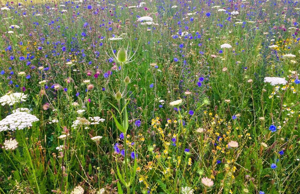 Aus der intensiven Nutzung genommen und frisch eingesät auf insgesamt 2577 qm, entsteht nun ein Bienen- und Schmetterlingssaum mit zertifiziertem Saatgut aus der Region .